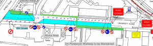 Our groundworks contractor PJ Careys will be undertaking landscaping works including tree pits, paving and kerbing to University Place adjacent to the Wolfson Medical Building. To facilitate these works we will be temporarily removing access to University Place from University Avenue.